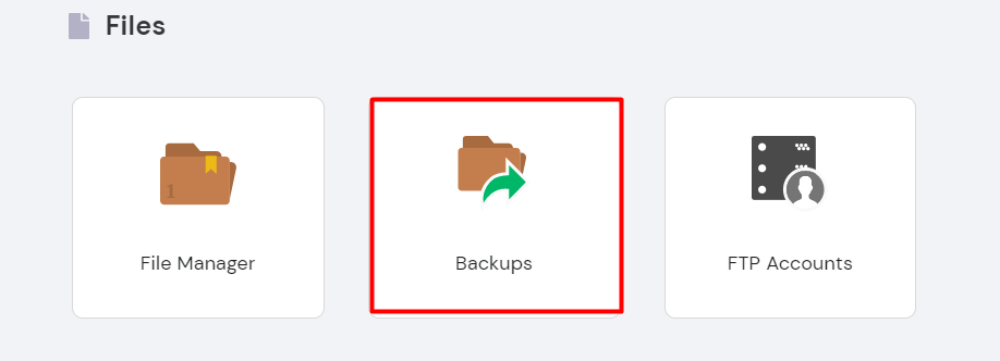 - Click Backups, and it will present two backup options – MySQL database and website files. If you're using CMS, like Joomla, you will need both backups.